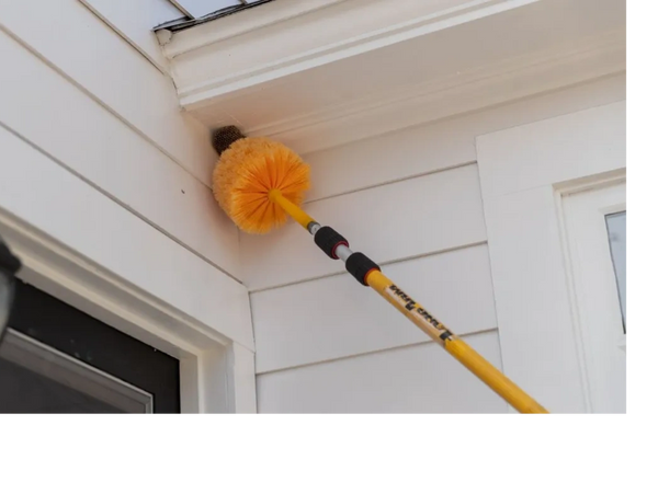 1. Webster brushing around all doors, windows, inside garage and eaves for spider/wasp control.